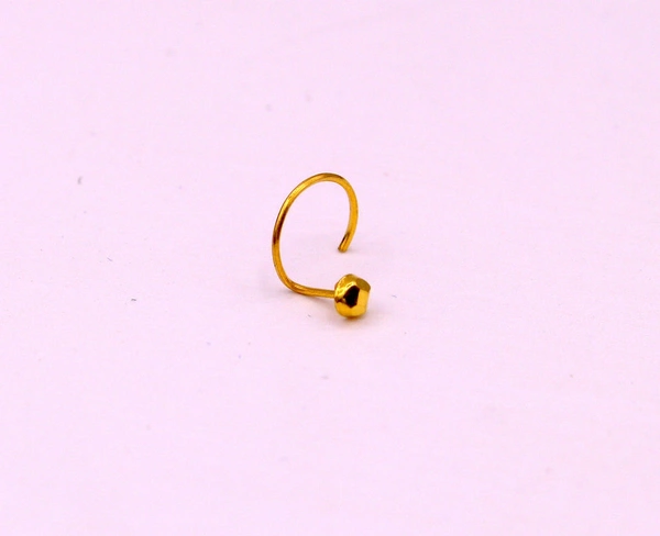 18KT YELLOW GOLD HANDMADE DIAMOND CUT DESIGN L BAND TINY NOSE PIN 1 PIECE FOR REGULAR WEAR.