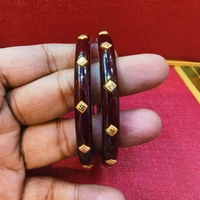 MARVEL MAROON JANGO SWASTIK DESIGN DOT KDM GOLD POLA BADHANO 1 PAIR APPROX WGT 0.400 GM