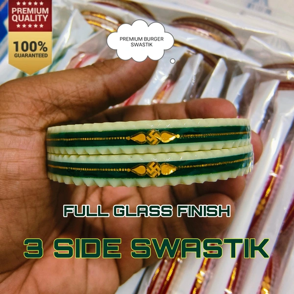 PREMIUM BURGER SWASTIK G/W 3 SIDE SWASTIK V1 HUID HALLMARK 22KT GOLD POLA (GLASS LAMINATED) 1 PAIR APPROX. WGT: 0.200 GM WITH CERTIFICATE.