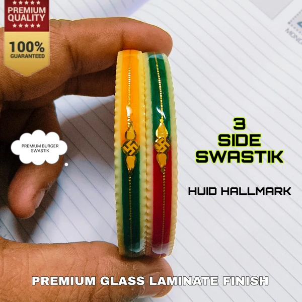 PREMIUM BURGER SWASTIK MULTI 3 SIDE SWASTIK V1 HUID HALLMARK 22KT GOLD POLA (GLASS LAMINATED) 1 PAIR APPROX. WGT: 0.200 GM WITH CERTIFICATE.