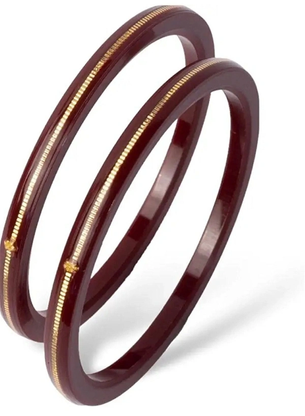 TRJ MAHALAXMI MAROON POLA EXTRA LITES HUID HALLMARK 916 22KT GOLD POLA BADHANO BANGLES (LAMINATED) 1 PAIR APPROX. WGT: 0.085 GM. (NON EXCHANGEABLE) WITH PURITY SMART CARD